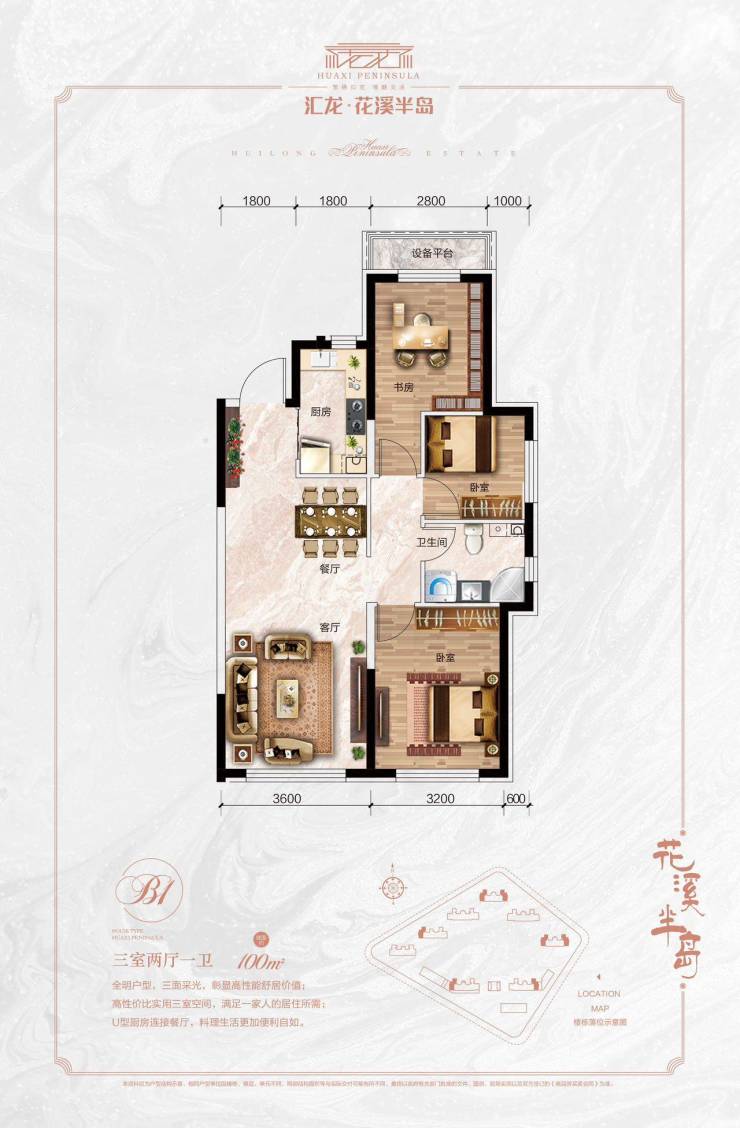 建面约126㎡ 三室两厅两卫