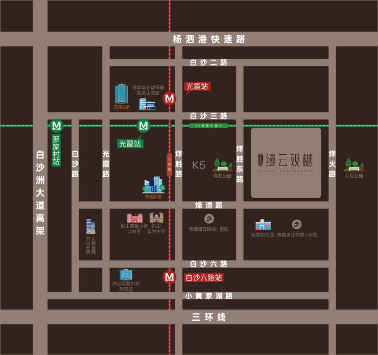 极速交通:5号线,12号线(建设中)双地铁交汇、杨泗港快速通道等串联三镇繁华