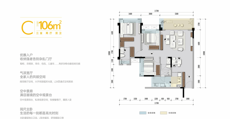 106平方米:三室两厅双卫