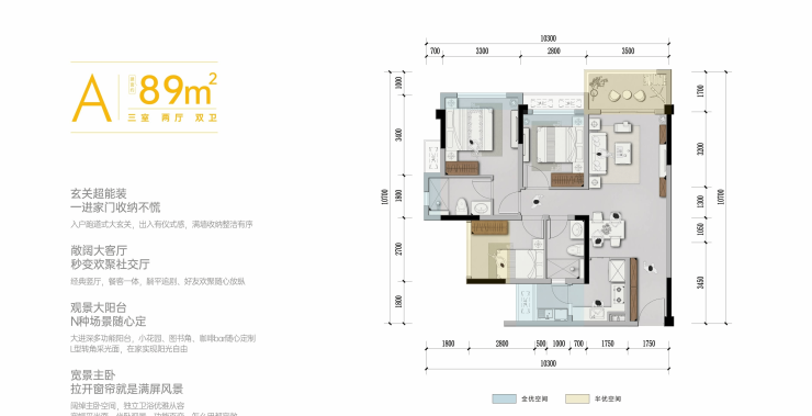 89㎡的户型紧凑实用,对于年轻夫妻或小家庭来说,是一个温馨的港湾;