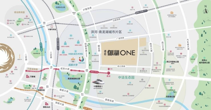 【德华御湖ONE】 坐落于龙泉驿西河镇新官山路 146 号,其优越的区位价值令人瞩目。距离地铁四号线西河站仅约 400 米,这意味着您只需一站地铁,就能轻松畅行成都。无论是上班通勤,还是外出游玩,都能节省大量的时间和精力。