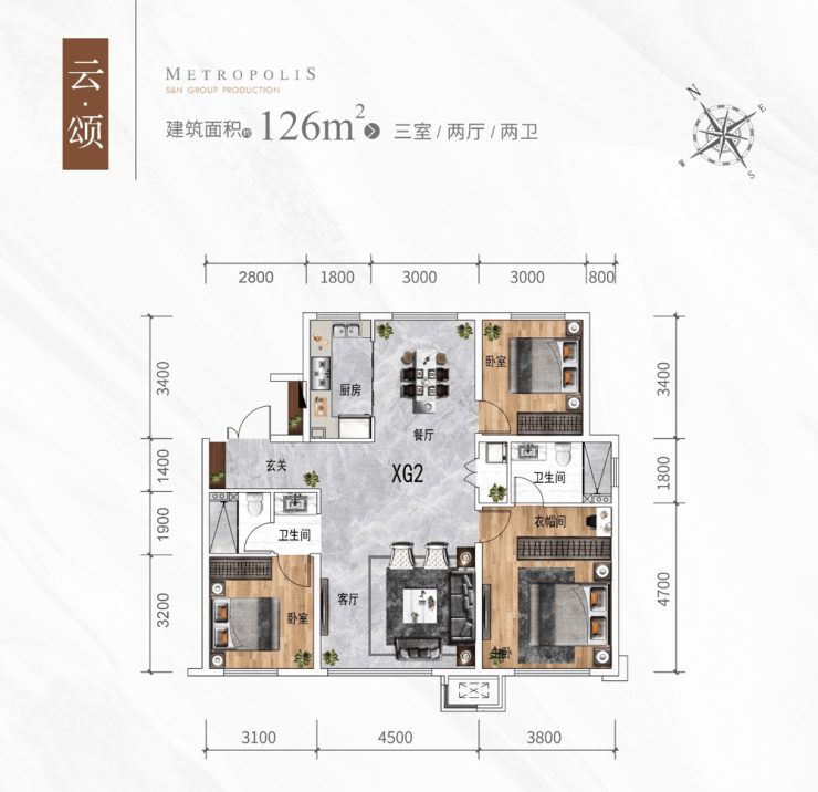 (4)主卧套房设计,独立全明卫浴,步入式衣帽间