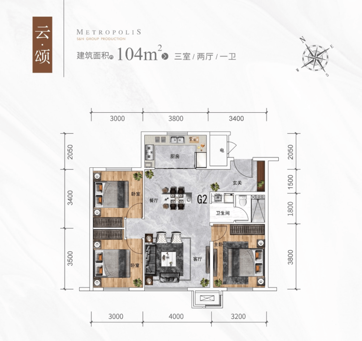建筑面积:约104㎡
