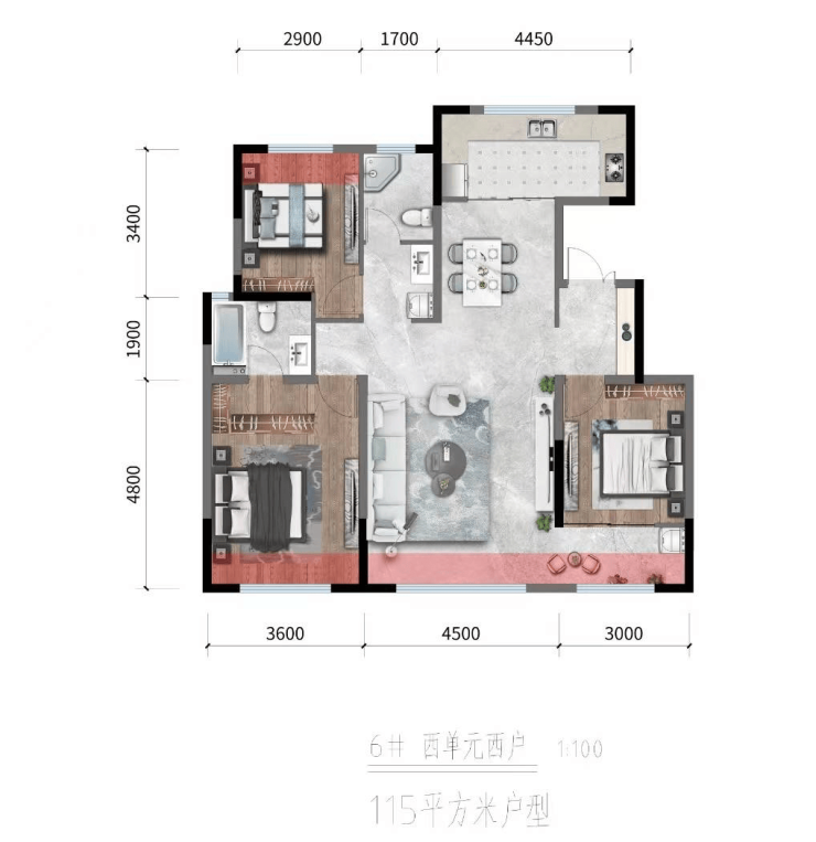 D户型:115㎡|三室两厅两卫