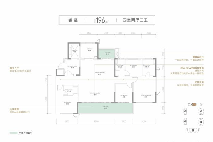 锦玺--建面约196㎡(四室两厅三卫)