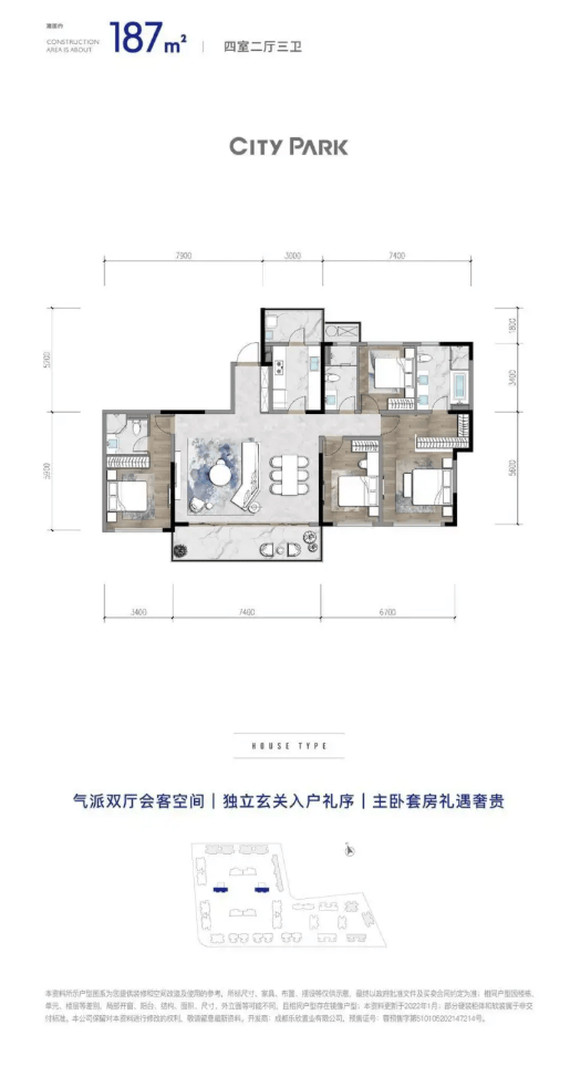 此户型是西派金沙的“压轴之作”,代表项目的最高产品力。它拥有奢侈的空间尺度,可自由规划为包含双主卧套房、独立家庭厅、中西双厨及多功能休闲区的家族式居住空间。无论是大型家庭聚会、高端社交宴请,还是容纳主人的多元志趣,都能从容应对,是为城市塔尖人物定制的传世资产。