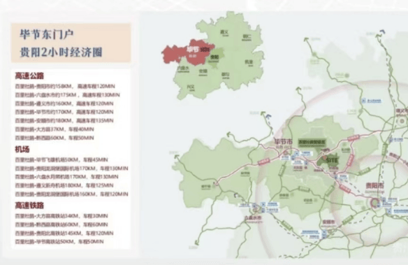 交通便利: 航空直达 毕节【飞雄机场】 贵阳【龙洞堡机场】 遵义【茅台机场】 高铁便利 川渝-2小时生活圈大方高铁站-约25分钟车程 高速通达 项目离高速口5分钟车程
