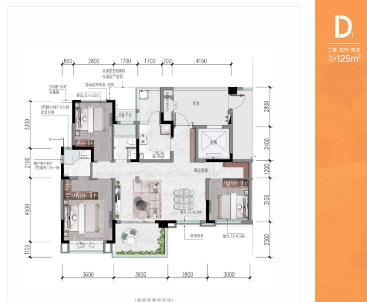 空间配置:二期2梯2户、三期含1梯2户及2梯3户