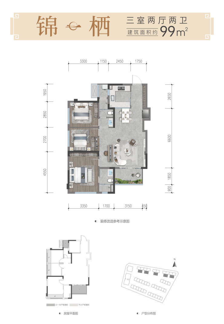 锦栖丨建面约99㎡灵动舒居丨三室两厅两卫