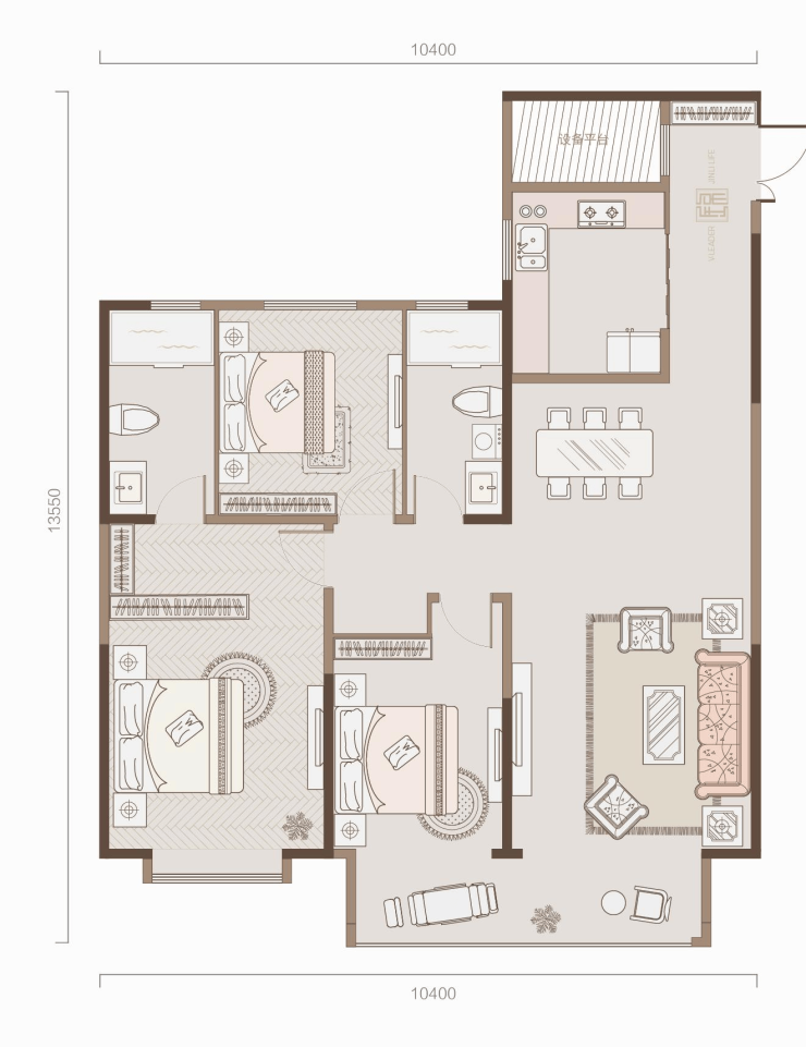 锦里▪观锦建筑面积:约131㎡—134㎡户 型:三室二厅一厨二卫