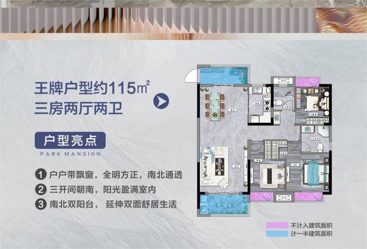 【115㎡王牌户型——南北双阳台 三开间朝南】