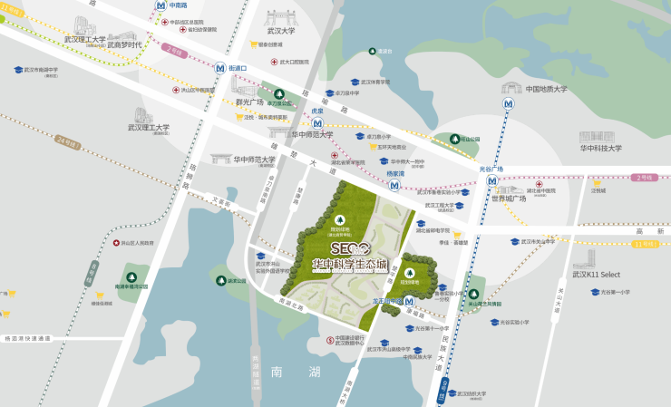 华中科学生态城是武汉市为促进创新发展的“大学之城”建设引进的市重点项目。项目落位于高校高知高智聚集的洪山区,是创新发展走廊之上的“驱动引擎”。