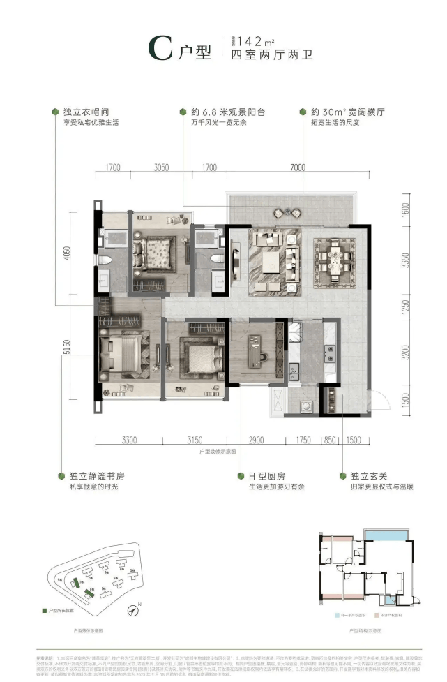 作为社区的主力面积段,此系列户型主打高实用性与功能性,公摊仅约21%,得房率较高。户型设计方正,可灵活规划为三房或四房,满足年轻家庭、首改客群的居住升级需求,是兼具性价比与舒适度的优选。