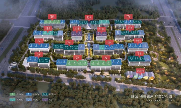 绿城·湖畔雲庐项目,坐落于郑东新区北龙湖片区,项目北临龙源东九街,西至龙湖中环路,东至龙湖外环路,南侧为南禄庄街,项目共规划16栋7层高的电梯花园洋房(面积区间152—247㎡)和一栋9班制国际双语标准幼儿园(2977㎡)以及一个地下高档会所;是绿城中国在郑州首个雲庐系美学作品(全资项目)。
