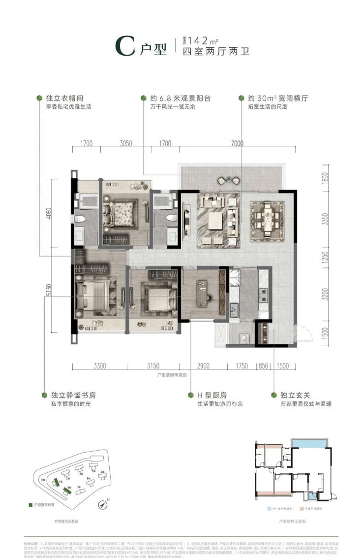 梯户配置:2梯4户(108-142㎡)、2梯2户(218㎡)、2梯3户(144㎡)