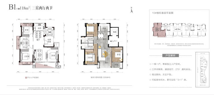 B1 118㎡三室两厅两卫【专梯专户 7米宽境阳台 南北通透采光绝佳】