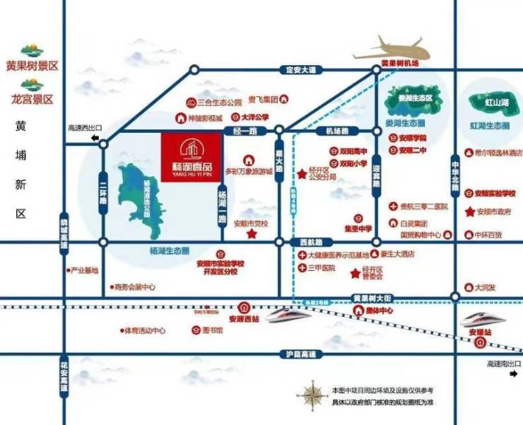 地段核心:项目位于经一路与杨湖一路交汇处,属安顺西城中心,5-7分钟车程可达黄果树机场、安顺高铁站及高速西出口,多条公交线路(7/10/14/15路等)覆盖老城区。
