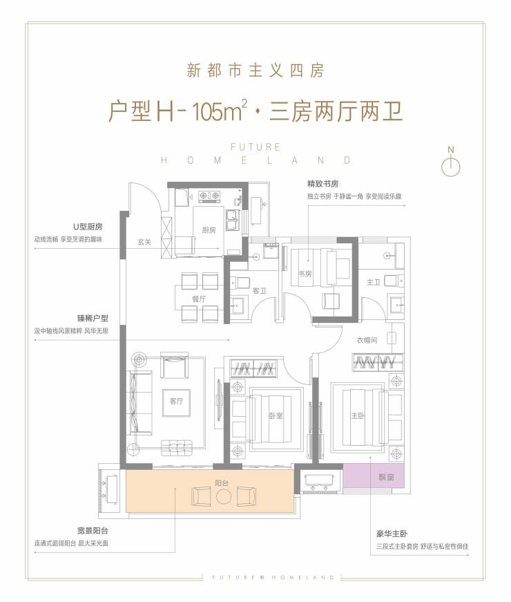均为边户,采光性好,户型方正,南北通透,三开间朝南、连通式大阳台,北向安静书房,赠送面积大