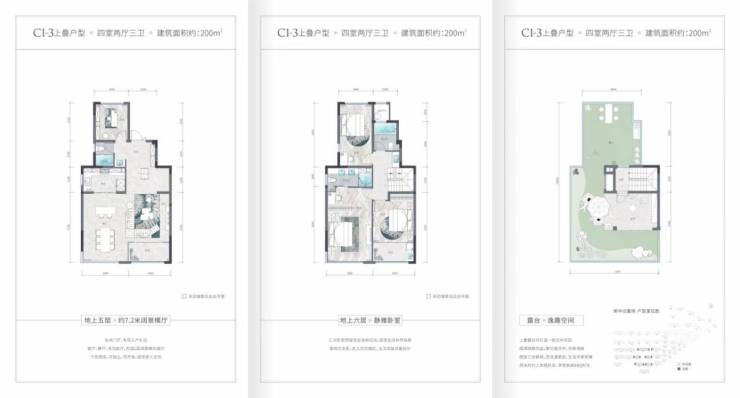 地上建面约165—200㎡ 新中式叠墅,约7.2米横厅,上叠带露台花园、中叠双层皆带阳台、下叠挑高地下室和绿地花园