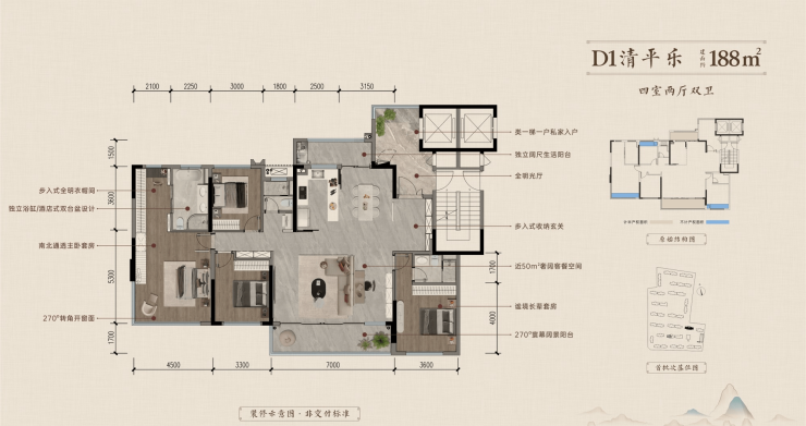 128-192㎡全系四居户型,采用创新空间布局,兼顾功能性与舒适度:• 双厅一体化设计延伸视觉尺度• 全明卫浴系统保障健康生活• 270°观景阳台衔接室内外空间