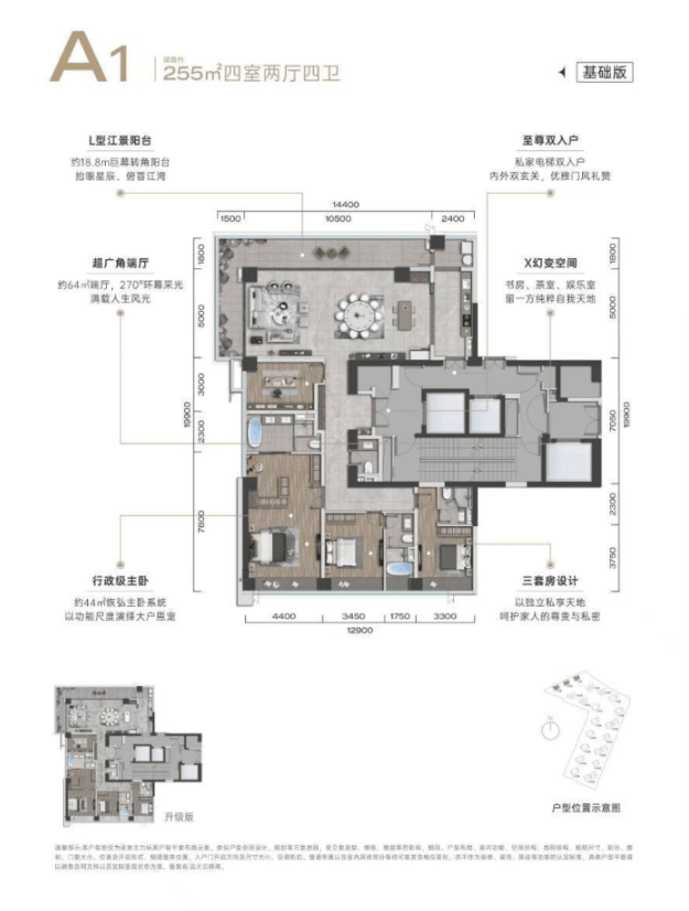 此系列户型是项目的巅峰之作,旨在打造可传承的家族资产。其核心优势在于最大化的一线江景或城市景观视野,通过全景落地窗设计,实现室内外景观的无界交融。空间上可轻松实现独立双主卧套房、中西双厨、豪华主卫及多功能厅(如书房、影音室、健身房)的配置,充分满足塔尖人物对私密性、社交宴请、个人志趣及家政服务的全方位、高标准要求,是身份与品位的终极象征。