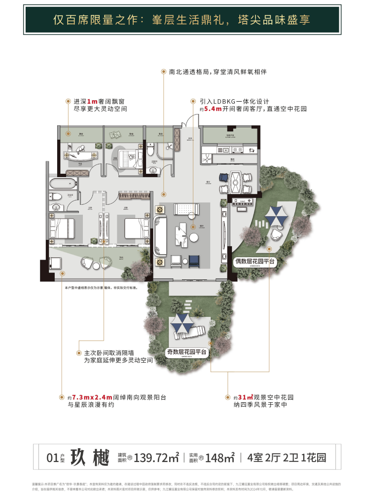 信华·玖景春庭户型图01户·玖樾——建面约139㎡(4室2厅2卫1花园)