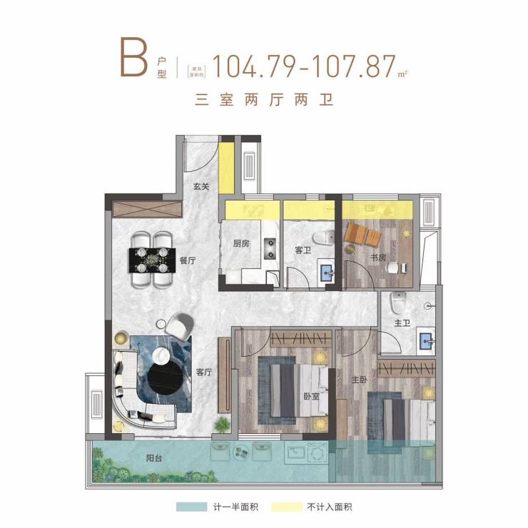 约91%高得房率精研户型,提高房屋实用面积。相当于100平户型,实得91平,享受多一间房的美好,更好满足家庭全生命周期需求。
