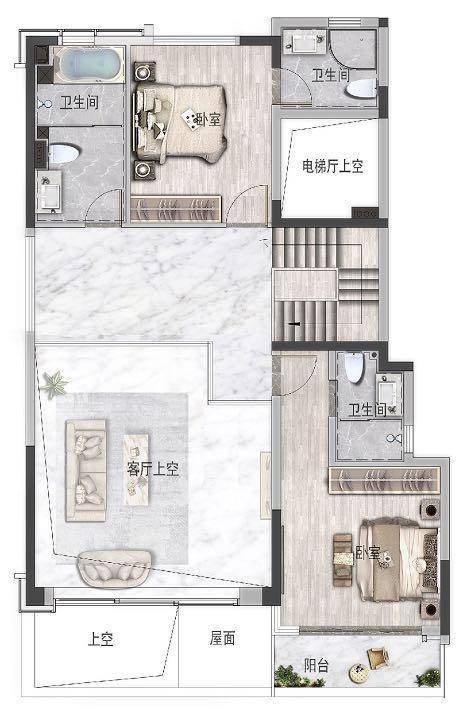 下叠2层平面图主卫四件套舒适空间,尽享尊贵生活套房四套间设计,私密性强,体验尊贵南向阳台270°观景体验,舒适又美观