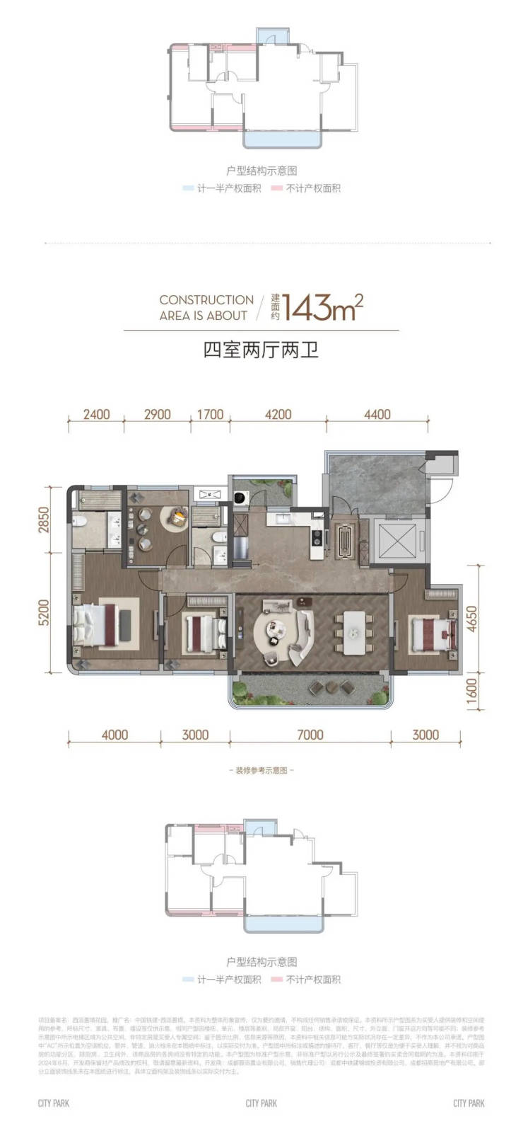 项目共规划461户改善型住宅,均为12-13层小高层建筑。采用2梯2户纯板式设计,实现户户独立入户的私密体验。主力户型为精装交付的143㎡、170㎡四居室,空间布局科学合理,满足高端家庭的全方位居住需求。