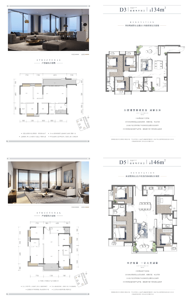 此系列是项目的巅峰藏品,旨在提供别墅级的空间体验。约224㎡的合院户型创新采用双院落设计,保障多代家庭的私密与共享。约287㎡的平墅则达到空间与视野的顶峰,拥有2梯2户、客厅+边厅的双厅布局以及约24米长的全景阳台,足以从容规划双主卧套房、中西双厨及多功能厅,是为城市塔尖人物定制的、可传承的河畔传世大宅。