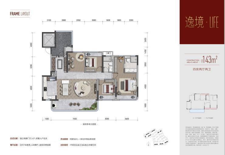 建面约143㎡-四室两厅两卫