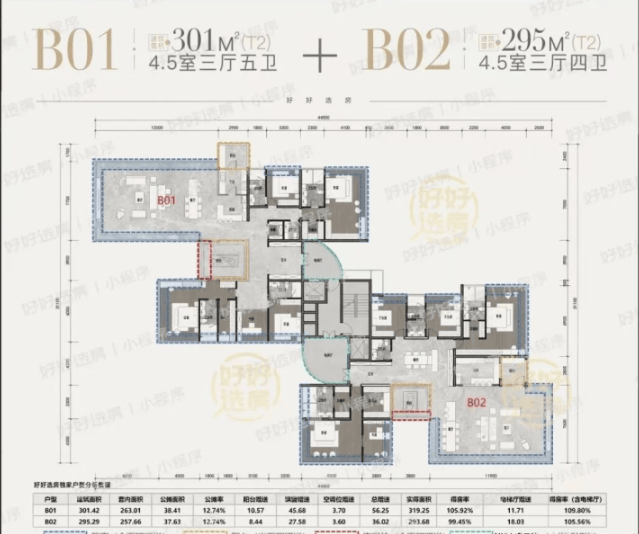 作为社区的主力产品,全部为大平层设计,布局方正实用,空间尺度开阔。190㎡ 户型功能齐全,230㎡ 为放大升级版并可局部观湖,而290㎡ 户型则拥有前述的 “私人汤池” 这一王牌亮点,将居住的享受性与独特性推向极致。