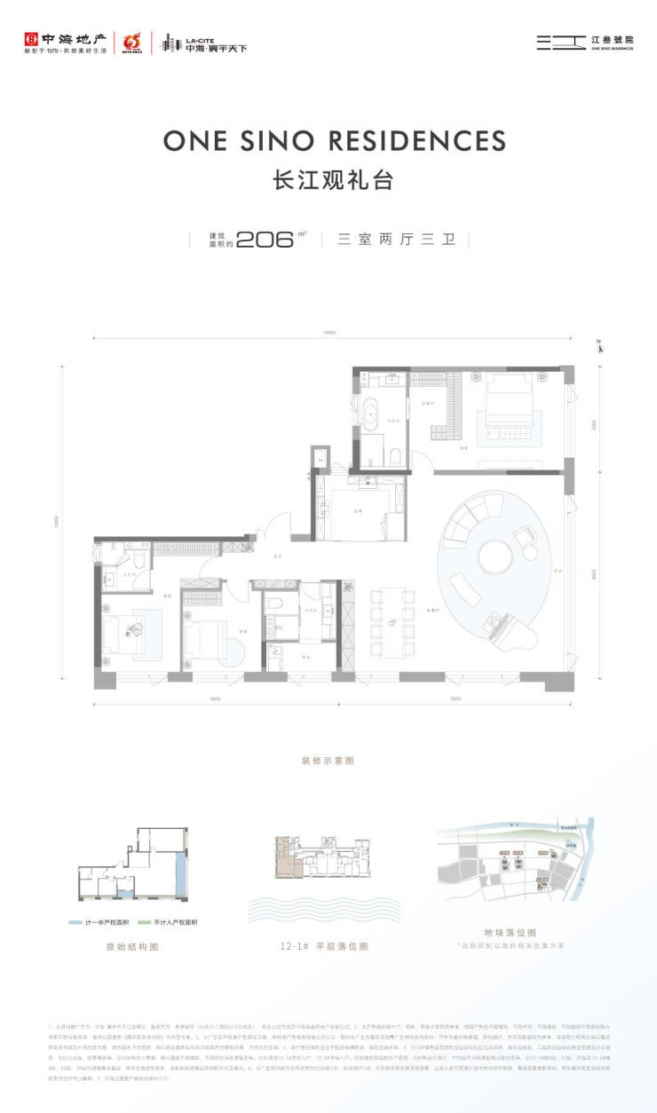 建面约206㎡观礼台:270°一线观江、约19米南向、约12米东向超尺度豪奢面宽,双主卧套房,为武汉的高净值人群,献予顶奢的生活范本。