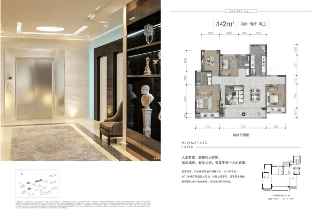 高标细节配置:所有户型均享有专属电梯厅,归家仪式感强;并由国家一级资质的五矿物业(物业费3元/㎡/月) 提供专业服务,保障社区历久弥新。