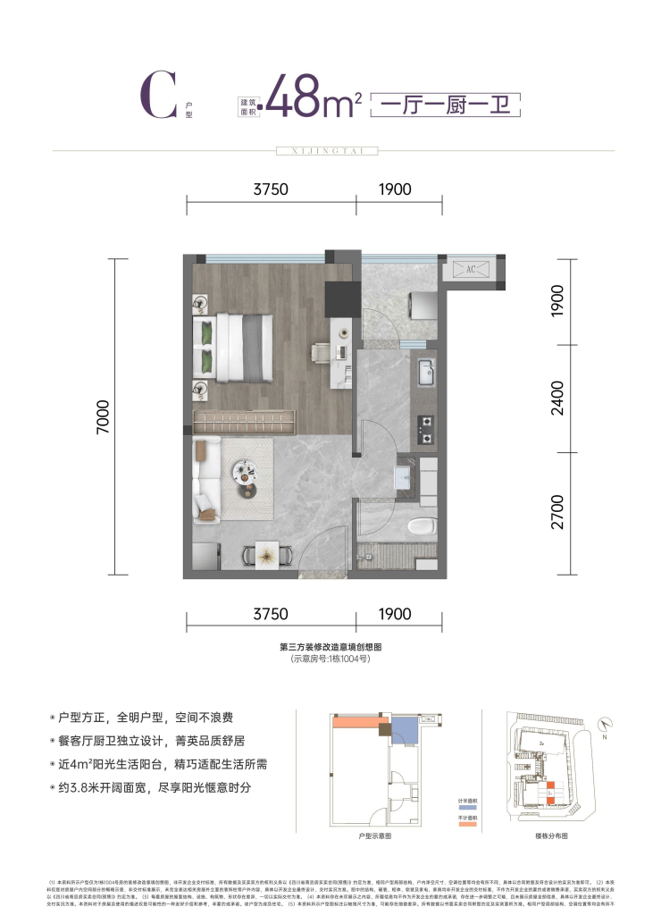 C户型:48㎡|一厅一厨一卫