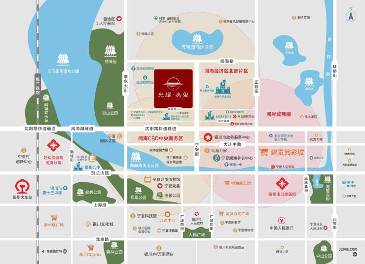 【区位价值】项目位于宁安北街和阅海路交会处西南角,宁安街是贯穿银川南北的一条主干道,也是城市发展的中轴线,集萃政商、交通、教育、生态、医疗等优渥资源。