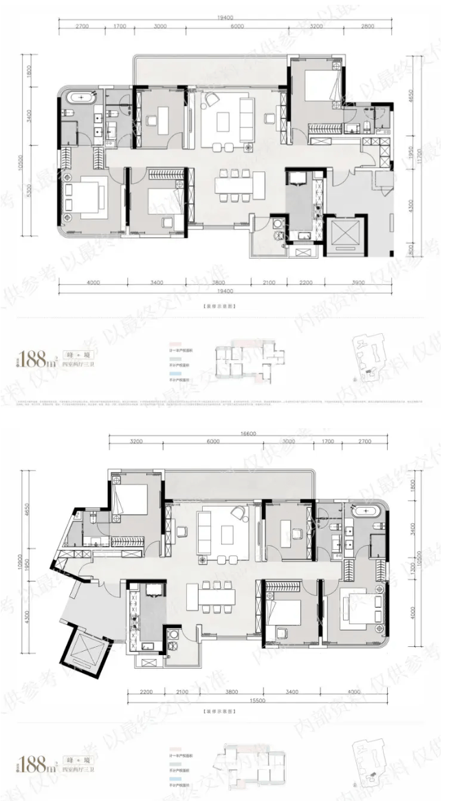 项目提供建面约170㎡、171㎡、188㎡、210㎡、230㎡的多元精装四房产品。户型设计摒弃千篇一律,以“LDKB一体化”空间、超大面宽和套房系统为核心,为不同家庭结构及生活方式提供定制化的奢居解决方案。