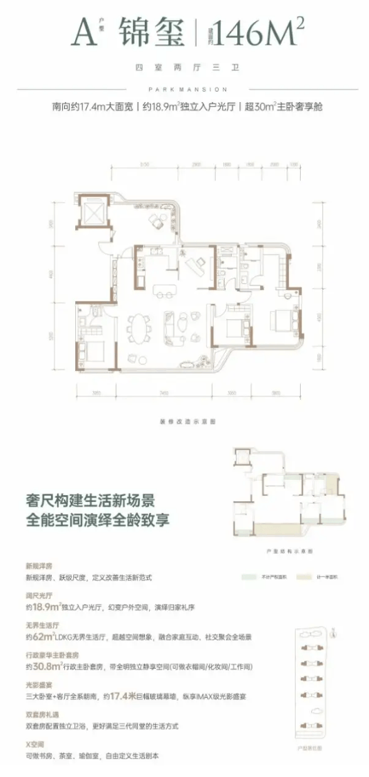 项目主打建面约128㎡至146㎡的全系精装洋房,作为 “新规跃级” 产品,旨在通过更优的空间设计、更高的精装标准,满足主流改善家庭对舒适度与功能性的全面升级需求。