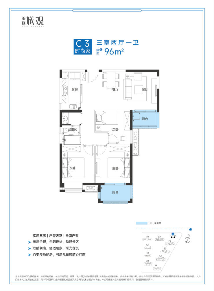 C3户型-96平米-三室两厅一卫
