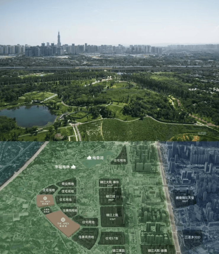 六条城市主干道构成"三横三纵"路网,快速连接金融城、东大街等核心商圈;三大TOD枢纽(三圣乡/林家坝/川师)环伺,汇聚2/7/9/13/20号线五条地铁;双机场通达优势:20公里直达双流机场,50公里接驳天府国际机场。