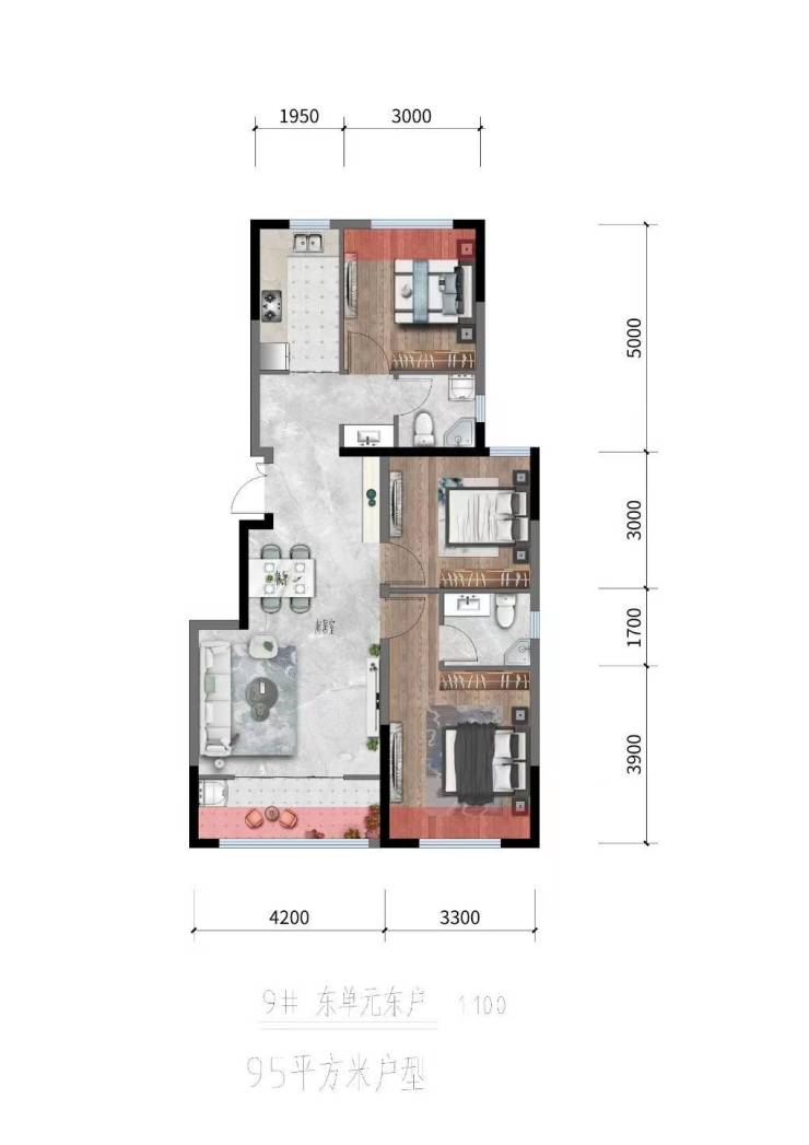 A户型:95㎡|三室两厅两卫