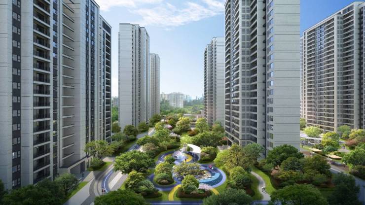 园区有西南两个主入口,分别有景观各自轴线,进入轩昂大门,人车分流;单元入户配置选型乔木、丰富的层次植物、石材铺装;豪华精装挑高入户大堂。