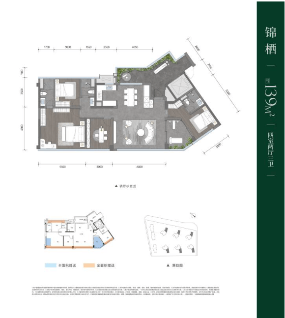 建筑面积约139平方米 四室两厅三卫