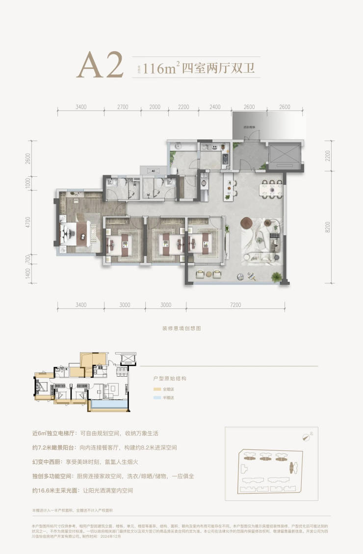 采光朝向:西北向95㎡丨东南向116㎡