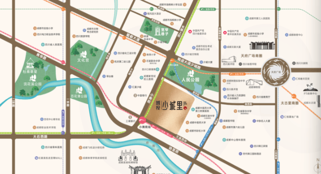 项目位于成都绝对的城市地理与文化中心——少城片区,这里是成都千年历史的发源地,也是当下城市活力与财富的聚合点。在住宅基本断供的绝版地段,项目作为可售资产,其稀缺性与价值基底不言而喻。