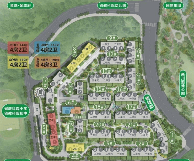 顶配高新,公园、学校、邻里中心三大核心资源环伺。新川湿地公园直线距离50m,近洽高新体育中心与陆肖站TOD,是新川黄金配套的聚合之地。