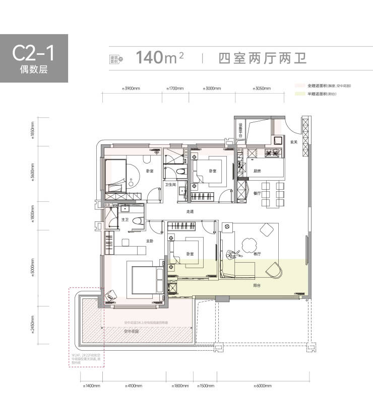 首开楼栋得房率高达127-132%约16-20㎡空中花园全赠送!