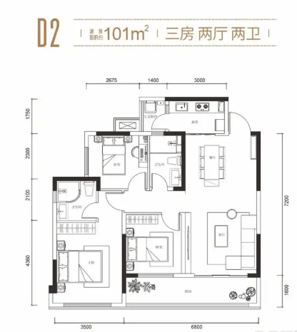 建面约101-105㎡ 功能性三房双卫