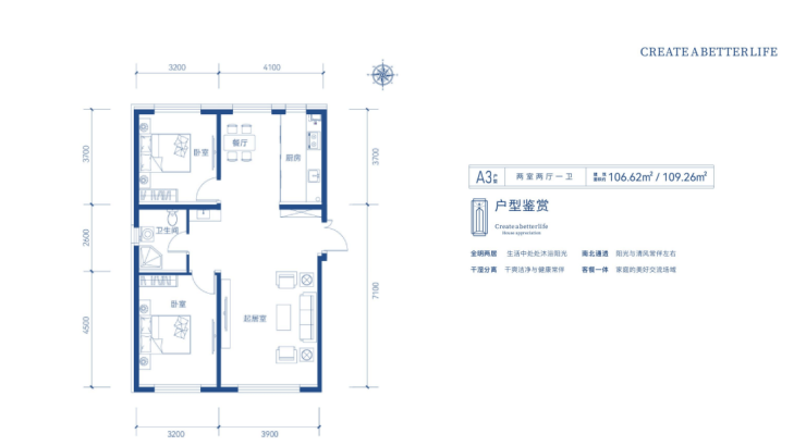 2室2厅1卫:95㎡、91-92㎡、107-109㎡