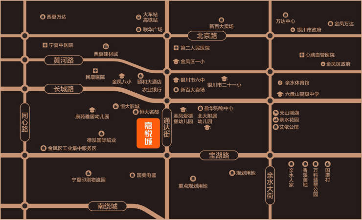 交通:交通网络四通八达,通达街北连银川火车站,南至绕城高速;南边宝湖路,东至兴庆区,西接西夏区。以上这两条路贯穿整个银川的交通主干道。项目周边公交线路46路、510路停靠。
